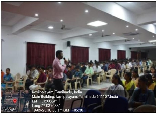 The Training and Placement Cell organized English Language Lab Training Program for I year BE / B Tech students for three days from 16.10.2023 to 18.10.2023. The program was conducted in the English Communication Lab, Info Institute of Engineering, Coimbatore. The students were trained by the Resource Person Miss. N. Tharani, Assistant Professor, Info Institute of Engineering. The resource person taught the students verbal communication skills and grammatical structures. The program successfully helped students improve their English communication skills and Listening, Speaking, Reading and Writing skills.